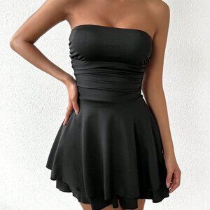 Black Preppy Womens Strapless Flared Hem Dress