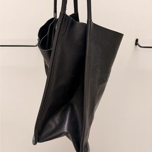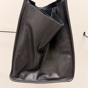 This sleek black tote bag is perfect for work, shopping or just a catch-all tote bag. Its minimalist design offers both style and functionality, making it ideal for everyday use. It’s used and well loved but in good condition. The shoulder straps have some wear- see picture.