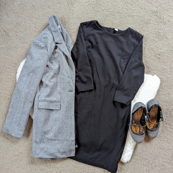 Hits right above the knee Thick, knit fabric. Zipper up the back.