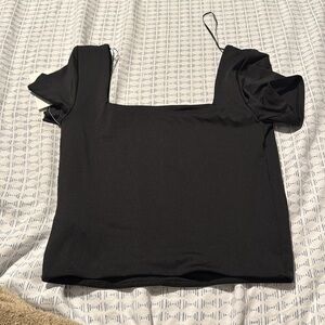 Black Puff Sleeve Square Neck Blouse