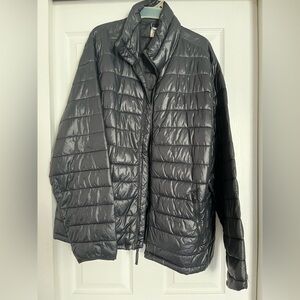 Stay warm with this sleek black puffer jacket. Perfect for chilly days. Size Large Unisex Style