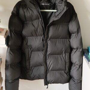 Stay warm and stylish in this Zara black puffer jacket, a minimalist take on the classic quilted winter coat. The matte finish and clean lines give it a premium look while the hood and full insulation keep you comfortable through cold weather.