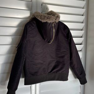 Black Puma Bomber Faux Fur Hooded Moto style Jacket Sized Large