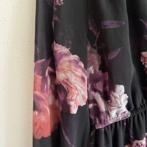 Beautiful black dress with pink and lavender floral print. Smoke free, pet free home. Excellent condition.