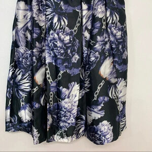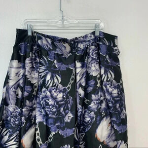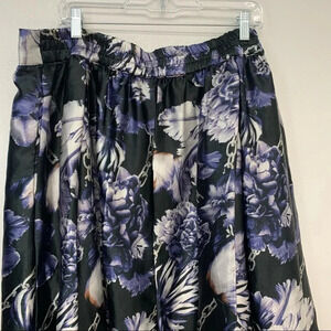 Black Purple Floral Midi Skirt 3X Pull On Full Flowy Pockets Lined Whimsy Goth
