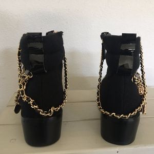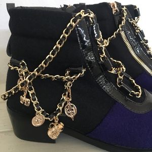 Black & Purple Winter Ankle Boots Gold Zip Chains