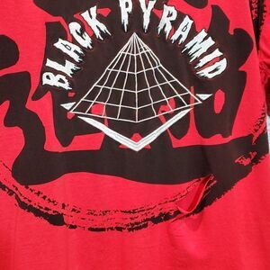 Black Pyramid Red Ripped Thrashed Embroidered Log TShirt Tee, Sz M Men's