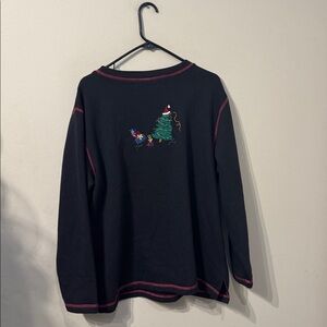Quaker Factory Bedazzled Angel Christmas Sweater in size XL featuring a Christmas Tree design on back with contrast red stitching. It measures approximately 24" across from armpit to armpit and 28.5" from top to bottom. Perfect to wear to a holiday party, Christmas party, work, to school or to wear as not so ugly Christmas sweater. Definitely gives 80s, 90s and y2k vibes. Grandmacore, Golden Girls vibes, vintage vibes, retro , classic. Note this item is pre-loved and may have pulled / loose threads, piling, need clean / have marks and is from a smoke free home.