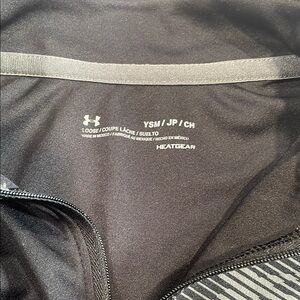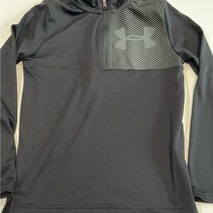 Stylish black quarter-zip pullover with a subtle striped design on the chest.