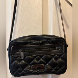 Marc Jacobs Stylish black quilted crossbody bag perfect for any occasion. Features a sleek design with a convenient front zipper pocket.