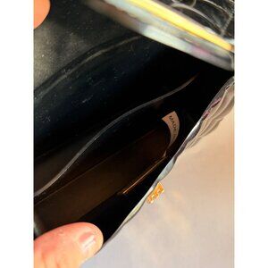 Elevate your style with this sleek crossbody bag. The glossy quilted design and gold-tone accents add sophistication, while the chain strap offers versatility.
