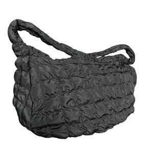 Black Quilted Puffer Shoulder Crossbody Hobo Bag
