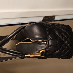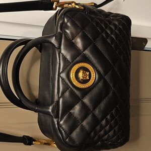 Elegant black quilted Versace handbag with a sleek design. Perfect for any occasion. 9"L, 4"W, 5.5" H