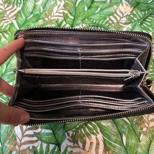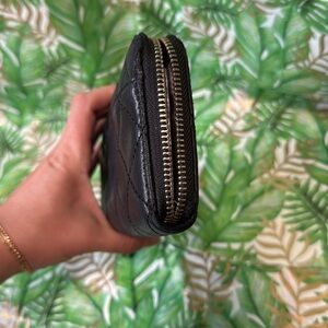 Elegant black quilted wallet with a sleek design. Perfect for any occasion.