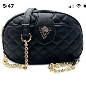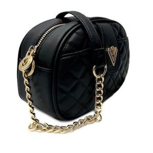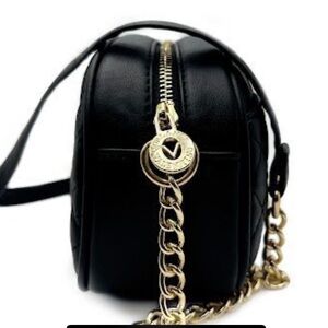 Elegant black quilted women's bag featuring a stylish gold chain. Perfect for any occasion.