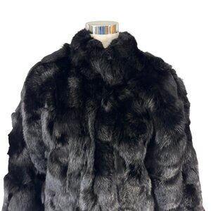 Black Rabbit Fur Coat Jacket Oversized Sleeves Size M Zip Front Vintage 1980s