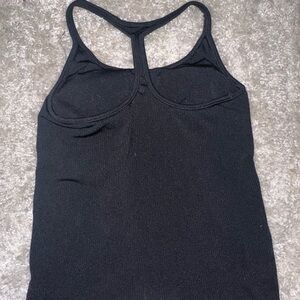 Sleek and versatile black racerback tank top, perfect for any casual outing or workout session.