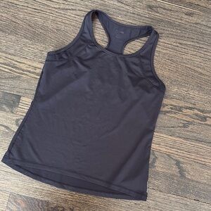Sleek and versatile black racerback tank top, perfect for workouts or casual wear.