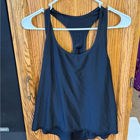 Stylish black racerback tank top. Perfect for workouts or casual wear.