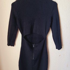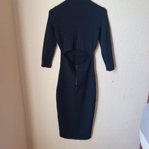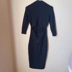 Black Rachel Roy stretch material, midi length dress with lower back opening. 3/4 sleeves. Tags removed, but Never morn.