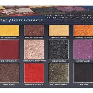 The product in the image is the Black Radiance Midnight Magic eyeshadow palette and two lipsticks in Eldorado and reggae red.
