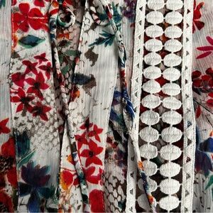 Black Rainn Multicolor Floral Sheer Round Neck Keyhole 3/4 Sleeve
