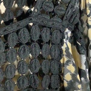 Black Rainn - Sz S - poncho style Tank top - crochet holes trim on top wavy hem