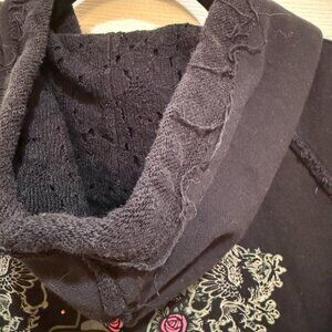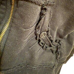 Large, black, hoodie, cotton, zipper, zip up, grunge, emo, minimalist, whimsy goth, fantasy, detailed, bedazzled, jeweled, bejeweled, cool, fashion, style, fun, grunge, goth, gothic, rock, rocker, punk, hrc, hard rock, collectible, rare, special, 2000s, 00s, unique, skater, black, ruffle, rose, badass, vintage, classic, millennial, millennium, hot topic, Tripp nyc, collector