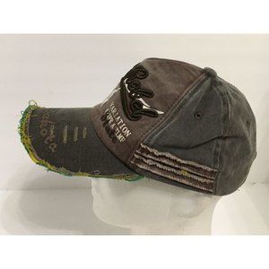 Front logo. Distressed thru out. Adjustable in bac. Cotton material.