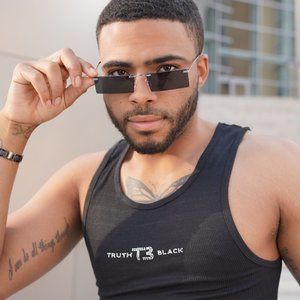 Black Rectangle Rimless Sunglasses