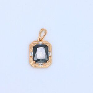 "Black Rectangular Pendant with Gold Textured Frame and Accents, XPPT1785