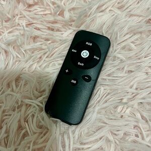 Sleek black rectangular mirror with slim frame. Includes a small black remote control. Modern, minimalist look. Easy to install and style-ready.
