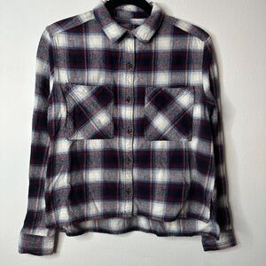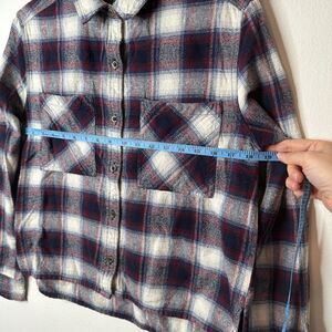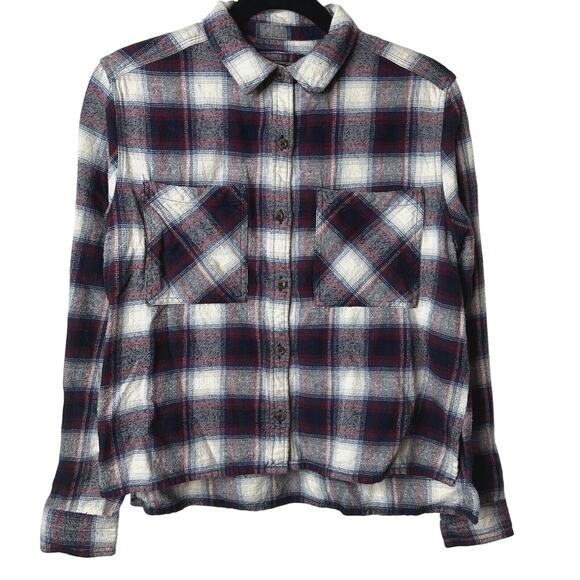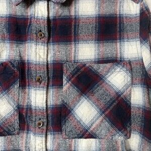 Forever 21 Multicolor Red Blue White Plaid Cropped Long Sleeve Thick Flannel Button Down Shirt Top