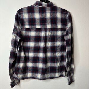 Black Red Blue White Plaid Cropped Long Sleeve Flannel Button Down Shirt M