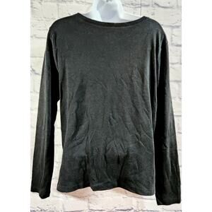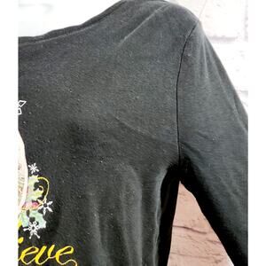 Black Red Gold Santa Print Believe Embroidered Top Large Lightweight Soft