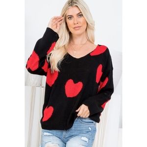 Featuring our Sweetheart Sweater perfect for Valentines Day in black featuring multiple red hearts.