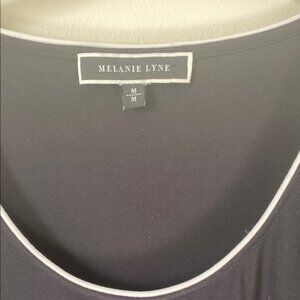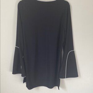 Black Relaxed Blouse with White Trim and 3/4 Sleeves