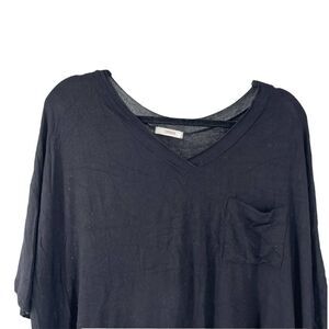 Black Relaxed Fit Deep V Neck Pocket T-Shirt Womens Size M Relaxed Basic Cherish