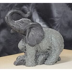Mini Elephant Collectible. Trunk Up. Body has silver glitter. Pictures are accurate. These are the items you will receive.