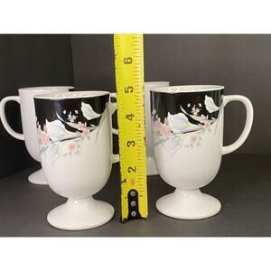 Black Rhapsody Fine China Set of Four Pedestal Cups Mugs Coffee Tea JAPAN VTG