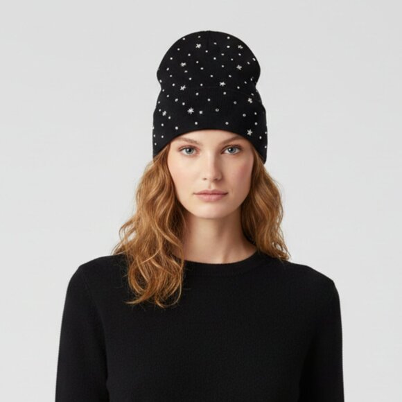 Black Rhinestone Beanie • Sparkly Knit Winter Hat • Cozy Cold Weather Cap • NWT