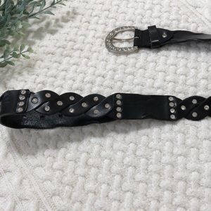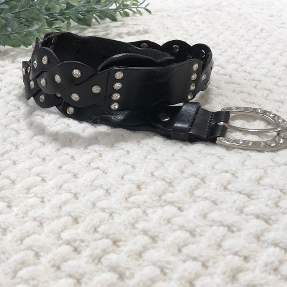 Worn a few times, one rhinestone is missing from the buckle
