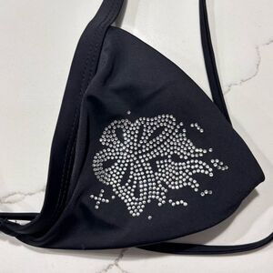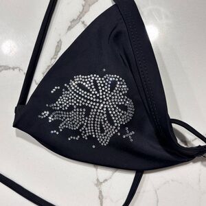 Black Rhinestone Butterfly Bling Strappy String Bikini Top