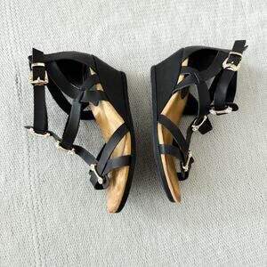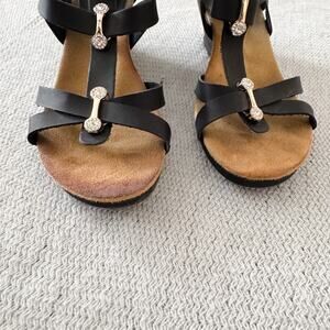 Black Rhinestone Detail Strappy Wedge Sandal - Size 8