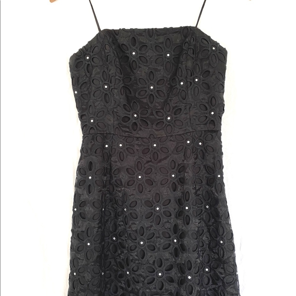 Authentic Lilly Pulitzer dress. Worn only once or twice for a nice dinner. Great condition with no snags or tears. Fabric is durable and also in great condition. Spaghetti shoulder straps have been altered but can be let out again. Pattern includes an overlay of flowers with no missing rhinestones. Great purchase for an evening dress.