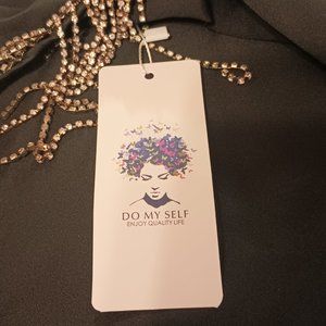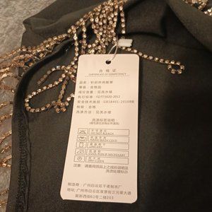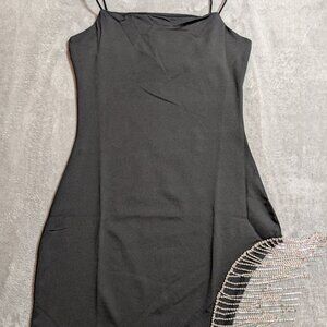 Looking for a dress that gives a smooth, flattering fit with a hint of sparkle? This black mini dress highlights your shape with a sleek, body-skimming silhouette and slim spaghetti straps. The standout detail is the rhinestone fringe along the hem, giving the piece a lively, eye-catching finish that moves beautifully.