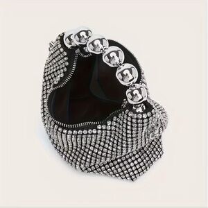 This chic black beaded handbag is perfect for any occasion. Its unique design and elegant style make it a must-have accessory.
