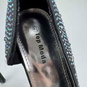Elevate your style with these black rhinestone peep toe heels from Top Moda.