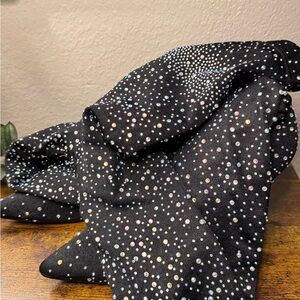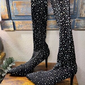 Elegant black tights / boots adorned with sparkling rhinestones. Perfect for adding a touch of glamour to any outfit.