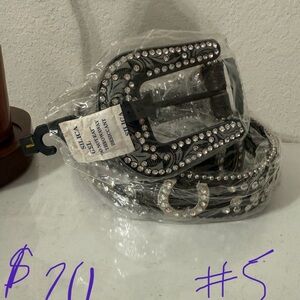 Stylish black belt with sparkling rhinestones. Perfect for adding a touch of glam to any outfit.